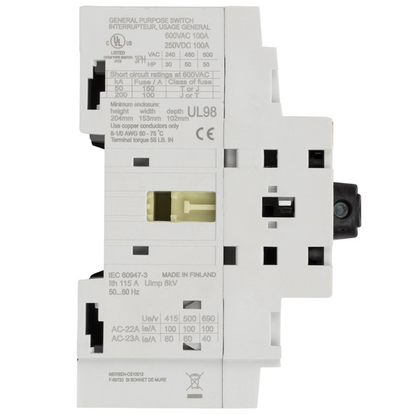 Mersen UL98 Non-fusible Disconnect Switch, Front operated, 3-pole, panel mount, 100A